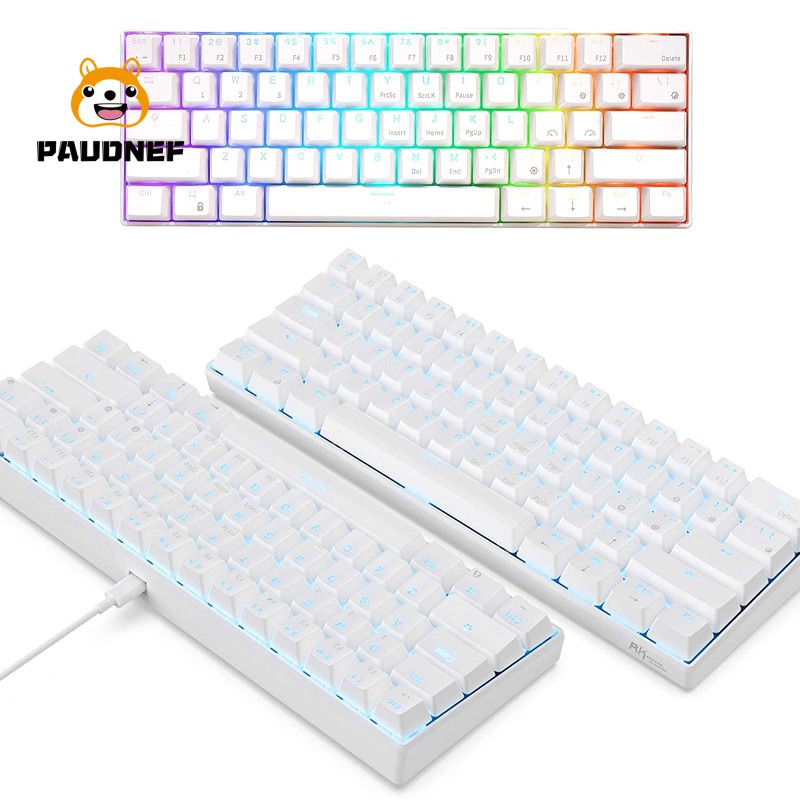 Rk61 / Royal Kludge Rk61 Mechanical Bluetooth 3 0 Wired Wireless 61 Keys Multi Device Led Backlit Gaming Office Keyboard For Ios Android Windows And Mac With Rechargeable Battery Brown Switch White Newegg Com / Verdict:the royal kludge rk61 is an extremely cheap wireless mechanical keyboard which shows no weakness in performance and rivals the more famous brands in this particular field.. Besides, rk61 can connect up to three devices simultaneously and can switch among them easily by clicking the button of fn+q, fn+w or fn+e. It possesses great lighting features, has absolutely excellent connectivity and can be swapped between devices. Is awesome like a function, rgb, ergonomic. As rk61 is a smaller keyboard, you need to use fn key combinations to use keys like page up / page down or to type some characters. So, the rk61 is a bluetooth mechanical 60% backlight keyboard.
